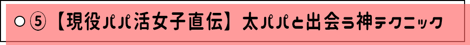 長く太く助けてくれるパパを見つけるためにも、まずは今日紹介したことをヒントに第一歩を踏み出していただいて、ゆくゆくはたくさんのパパに支援していただいてたっぷりお手当をいただける女子になりましょう(笑)