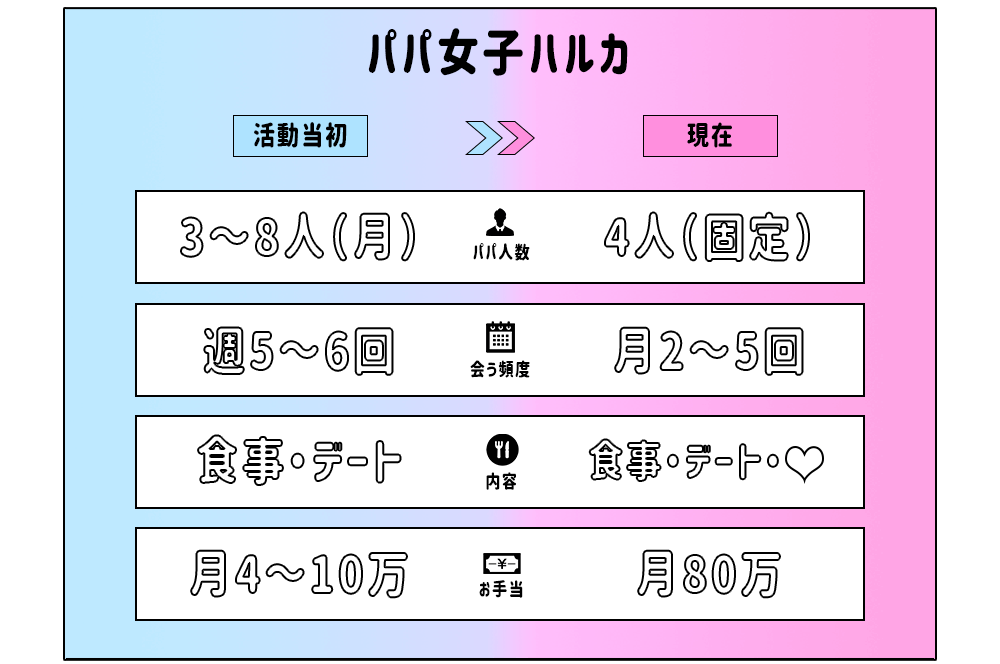 ちなみに私がパパ活を始めた頃は友達にパパ活をしている人が本当に少なかったんです。